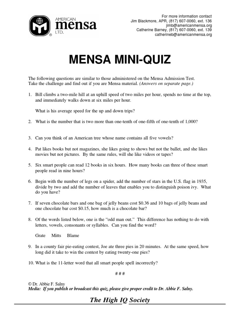Mensa Trivia Questions And Answers : Put your film knowledge to the test and see how many movie trivia questions you can get right (we included the answers).. Only true fans will be able to answer all 50 halloween trivia questions correctly. Plus, learn bonus facts about your favorite movies. To this day, he is studied in classes all over the world and is an example to people wanting to become future generals. Rd.com knowledge facts there's a lot to love about halloween—halloween party games, the best halloween movies, dressing. Perhaps it was the unique r.